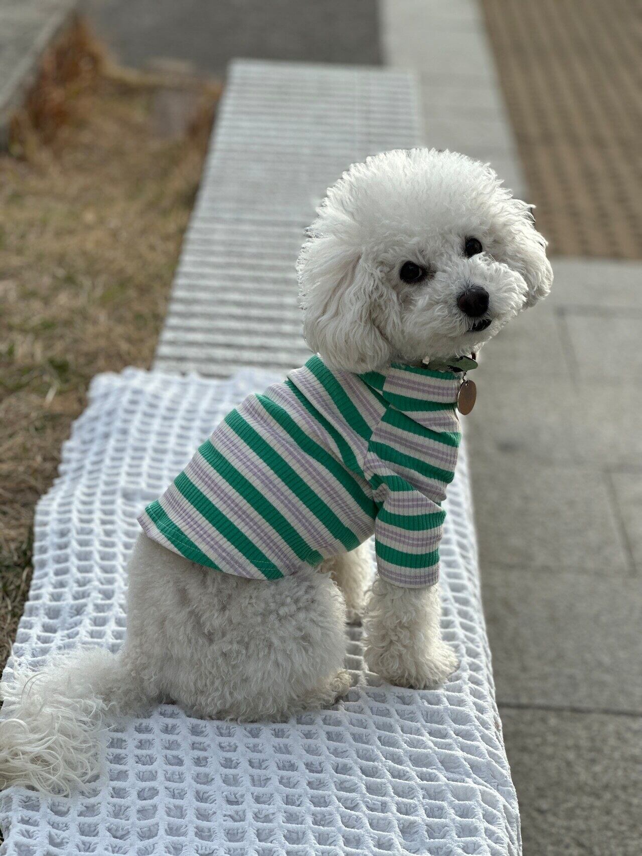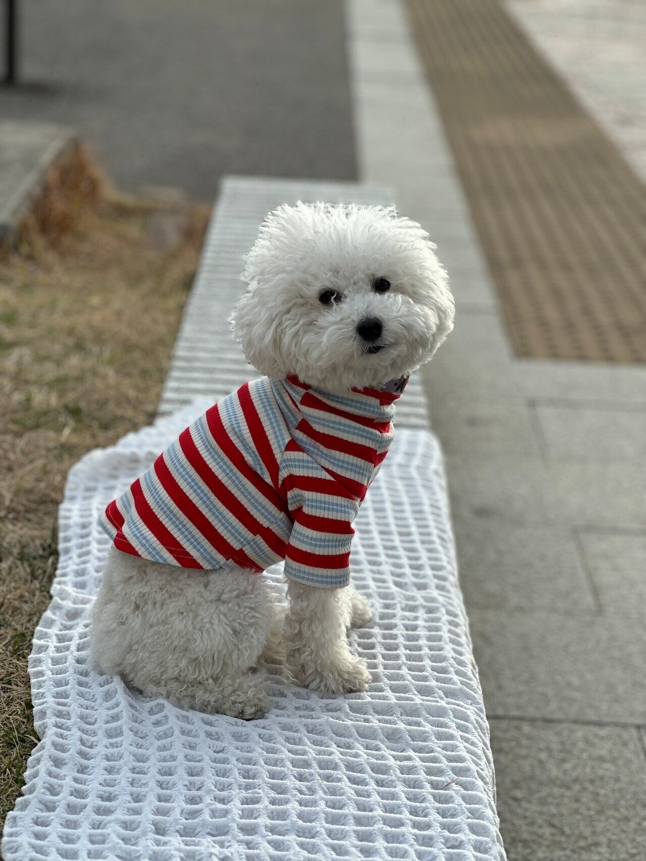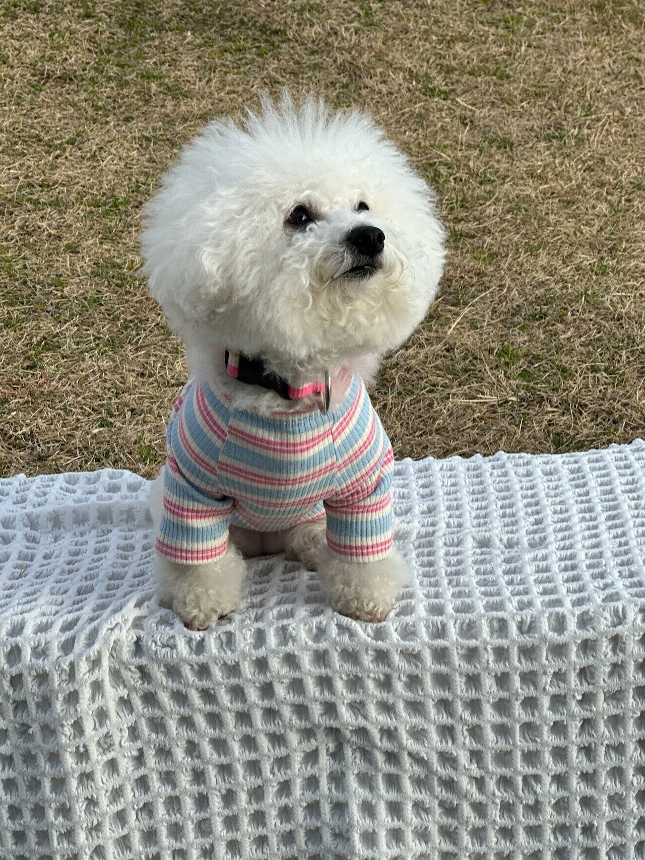 パステルカラーのボーダー柄が特徴的で、愛犬に似合う可愛いニットです!